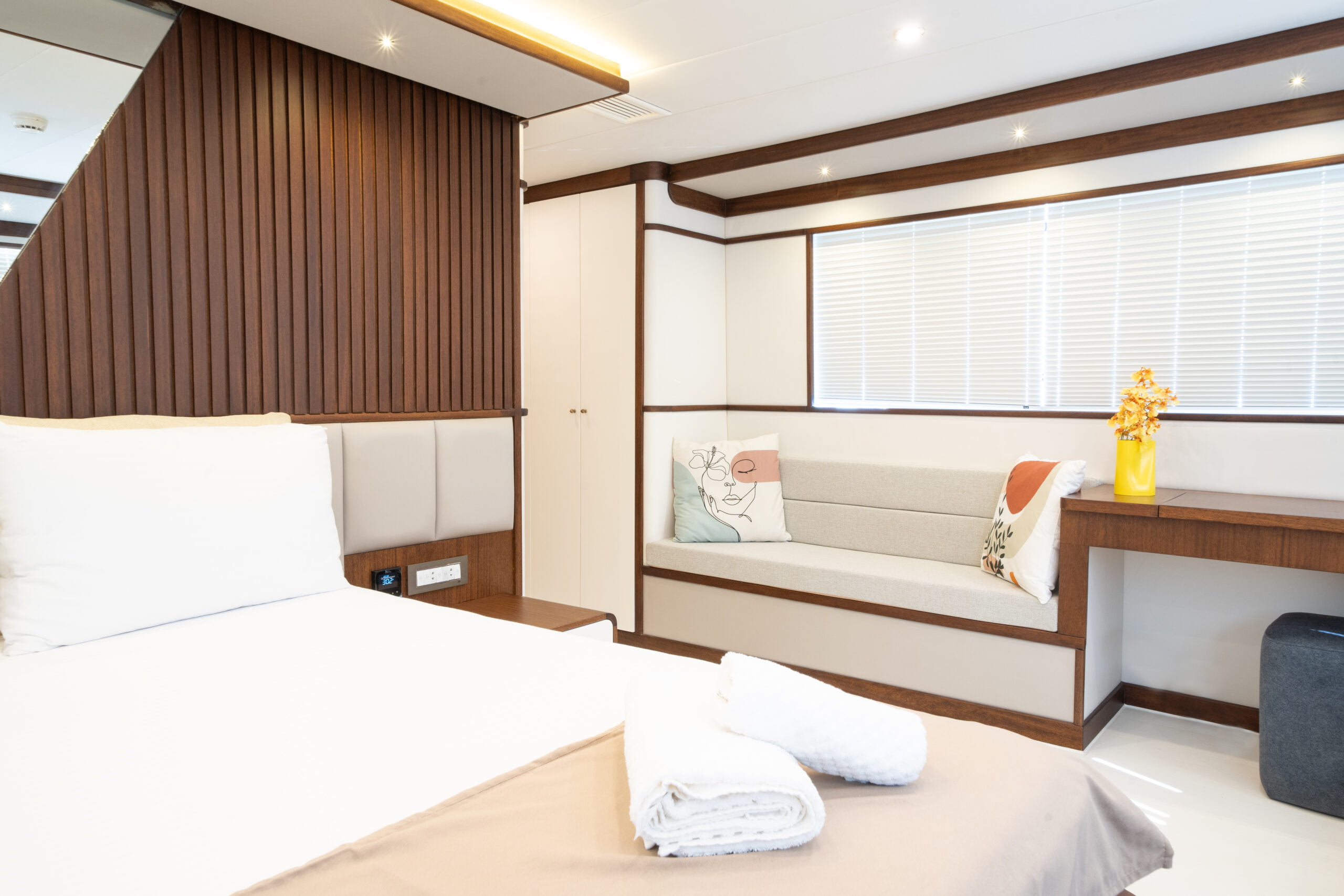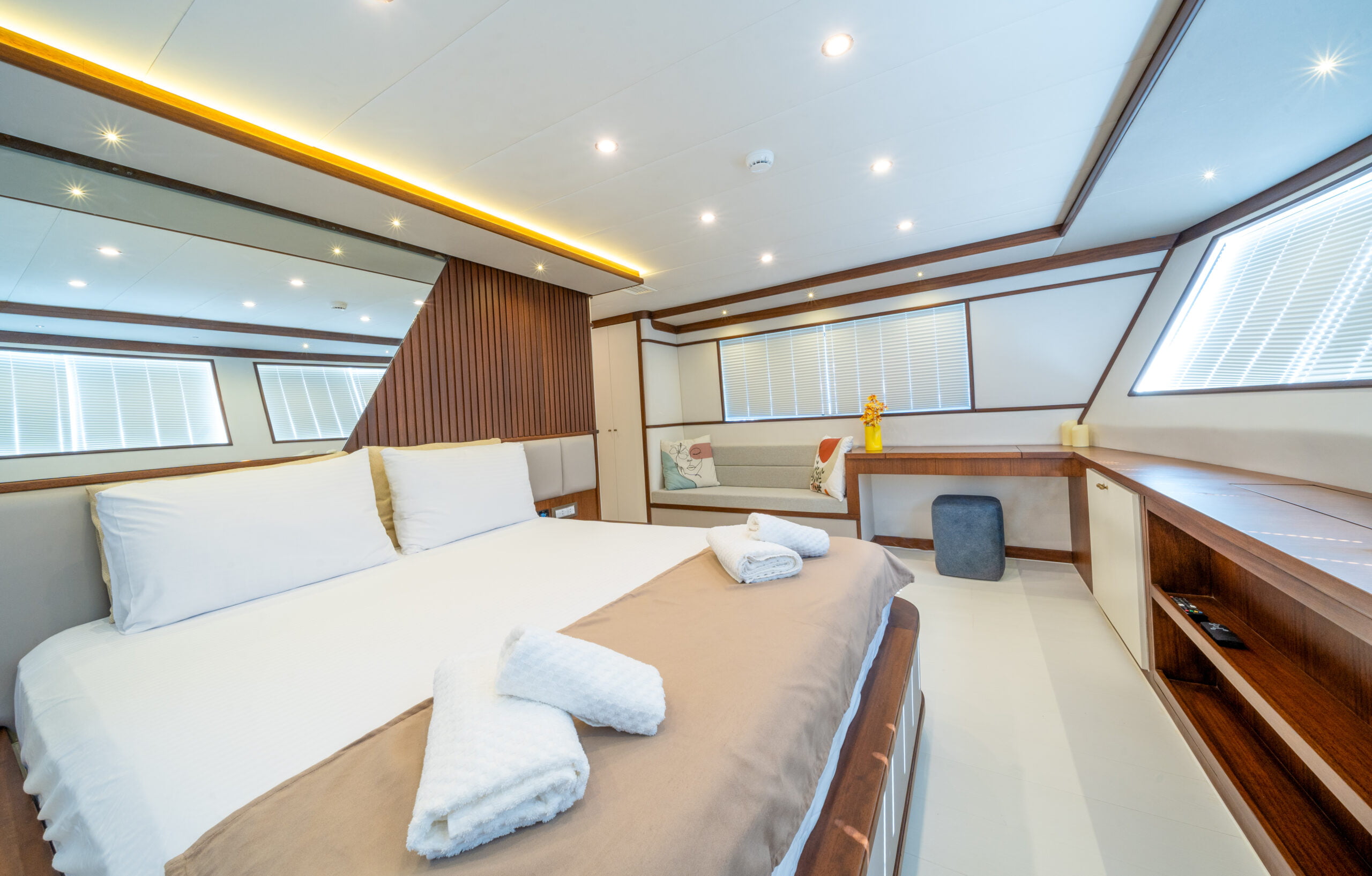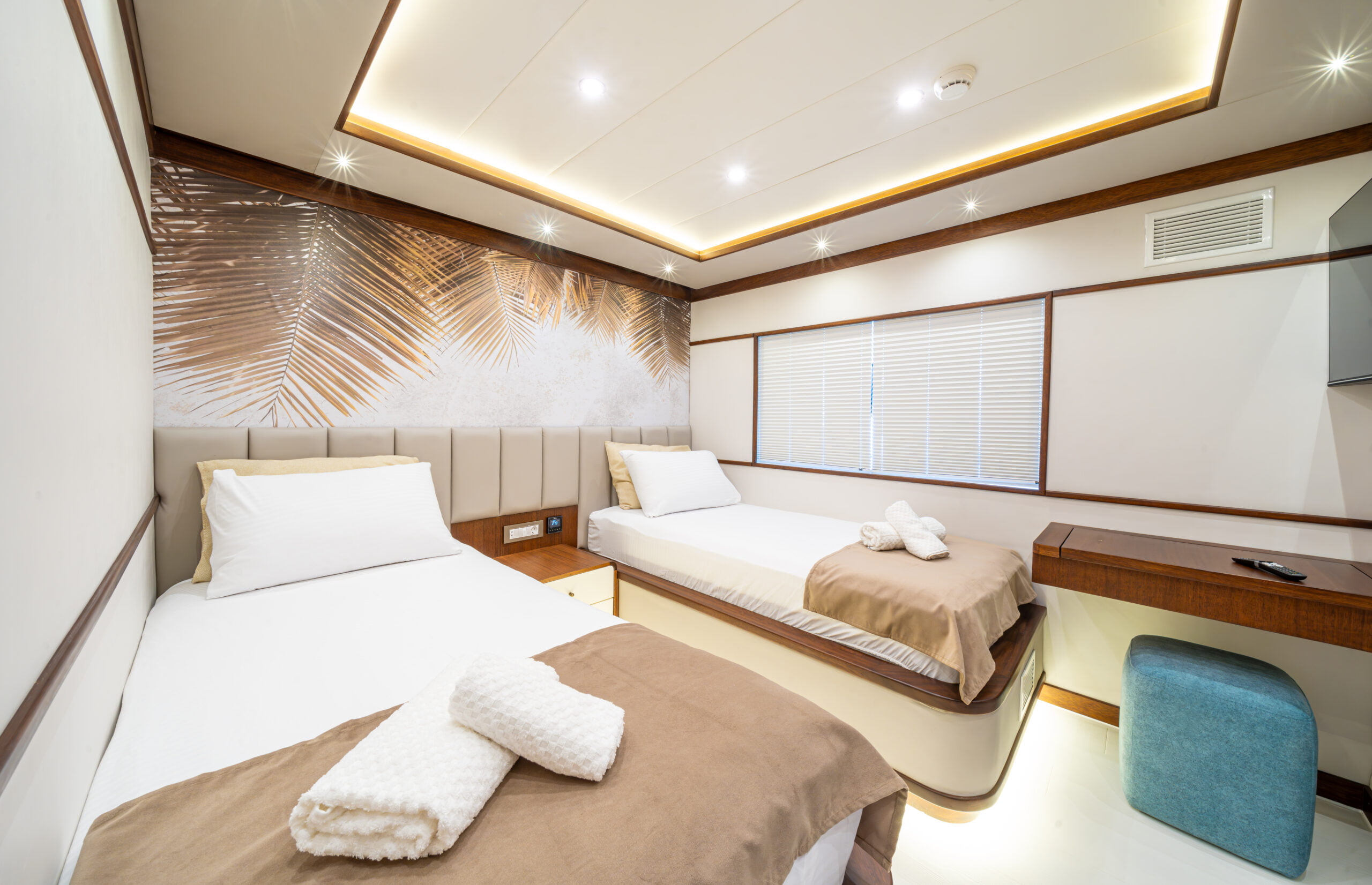 It is 23 meters long and 6.60 meters wide. Completed in 2023, it offers guests a wonderful blue cruise with luxury and comfort in mind.